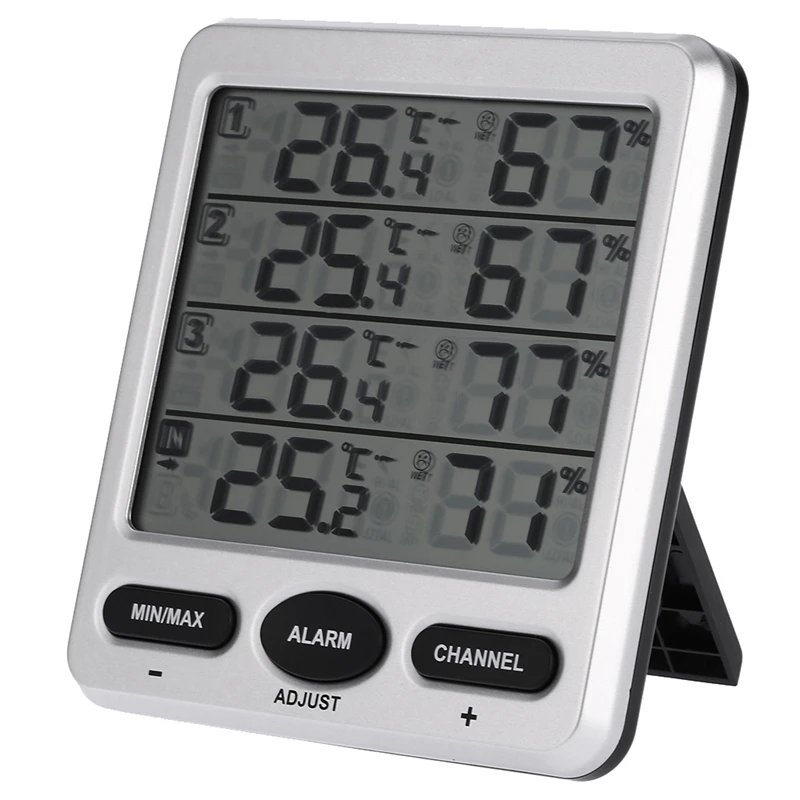 Multi-Function Lcd Wireless 8-Channel Indoor/Outdoor Temperature and Humidity Meter with Four Remot