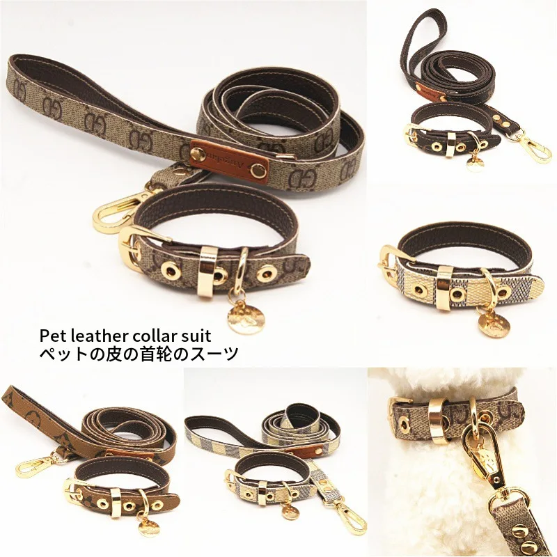 Review Top Classic Presbyopia Leather Pet Collar Leather Haulage Rope Package Dog Useful Product Pet Supplies